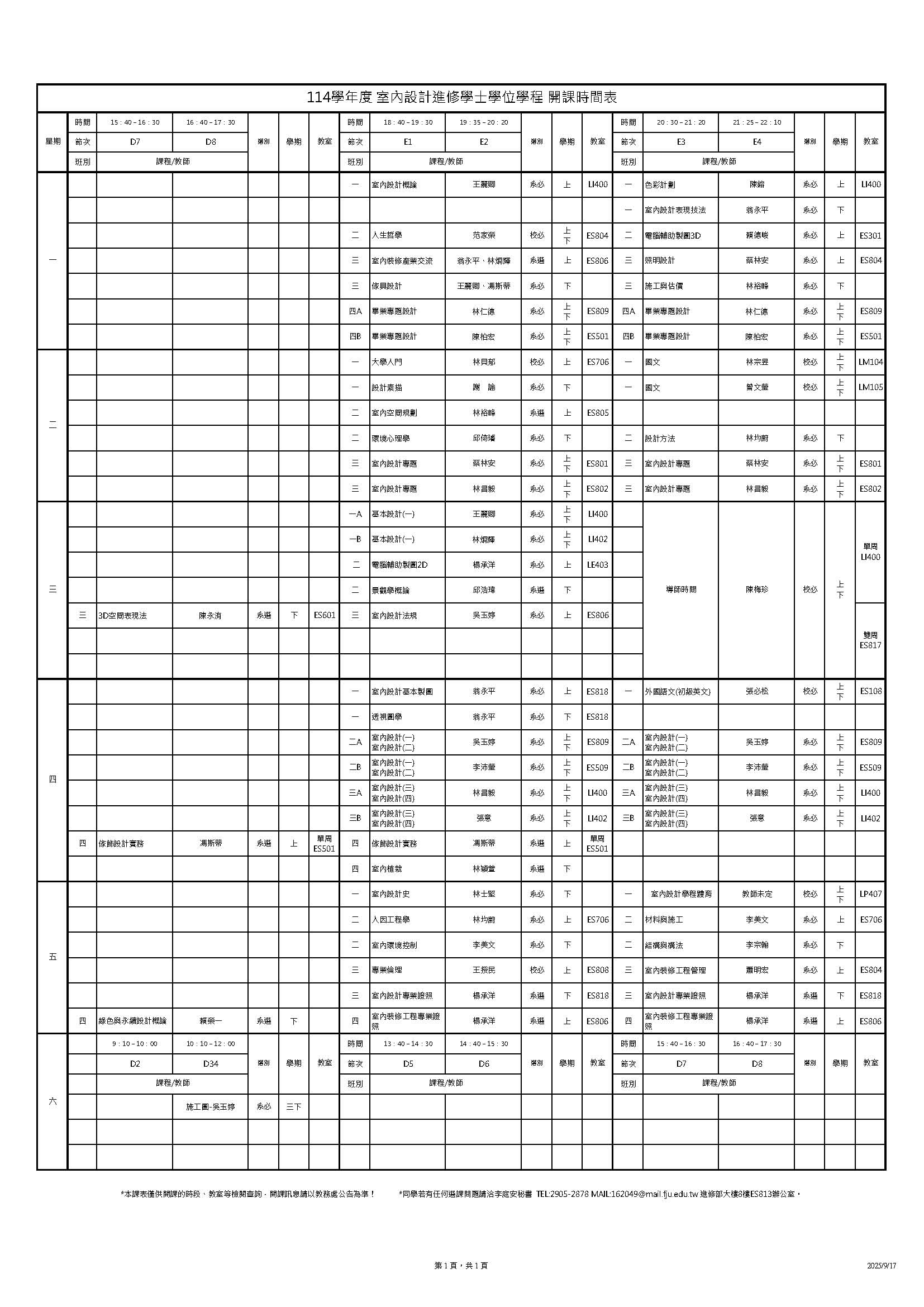 [一般公告]114學年度室內設計學程課表---0818