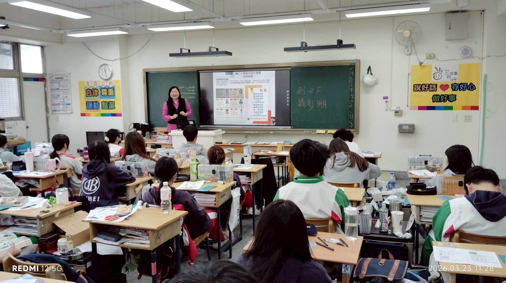 王麗卿主任在115年3月23日到泰北高中入班進行招生宣傳,這次特別選在同是美工科室內設計組的班級~